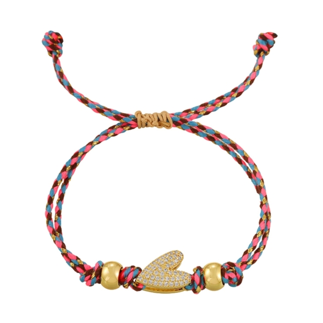 Một vòng cổ tay hình dây thừng nhỏ, có viên đá hình trái tim màu đan xen với phần centerpiece màu vàng lấp lánh tạo một phong cách boho-chic nhẹ nhàng. Dễ đeo, điều chỉnh được. Là món quà bạn bè lý tưởng cho besties.