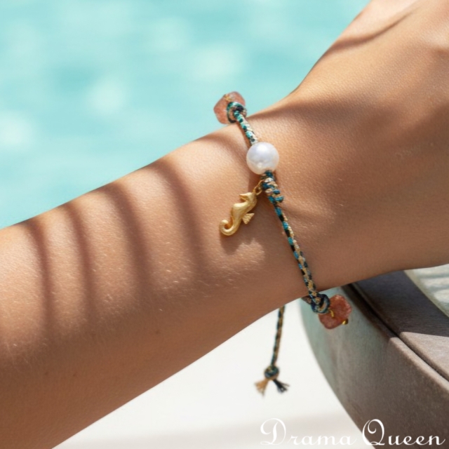 Vòng tay dây thừng Cá Ngựa có phong cách biển xanh , cho những chuyến du lịch vui nhộn và đầy nắng. Dây thừng nhẹ được trang trí bằng các charm vỏ sò nhỏ và biểu tượng biển cả đi kèm với khóa điều chỉnh dễ dàng cho phép bạn đeo chồng nhiều vòng hoặc đeo riêng lẻ để có phong cách nghỉ dưỡng dễ chịu, hoàn hảo cho những chuyến đi nắng bên hồ bơi, dọc bờ biển và những buổi đi dạo hoàng hôn cùng bạn bè.